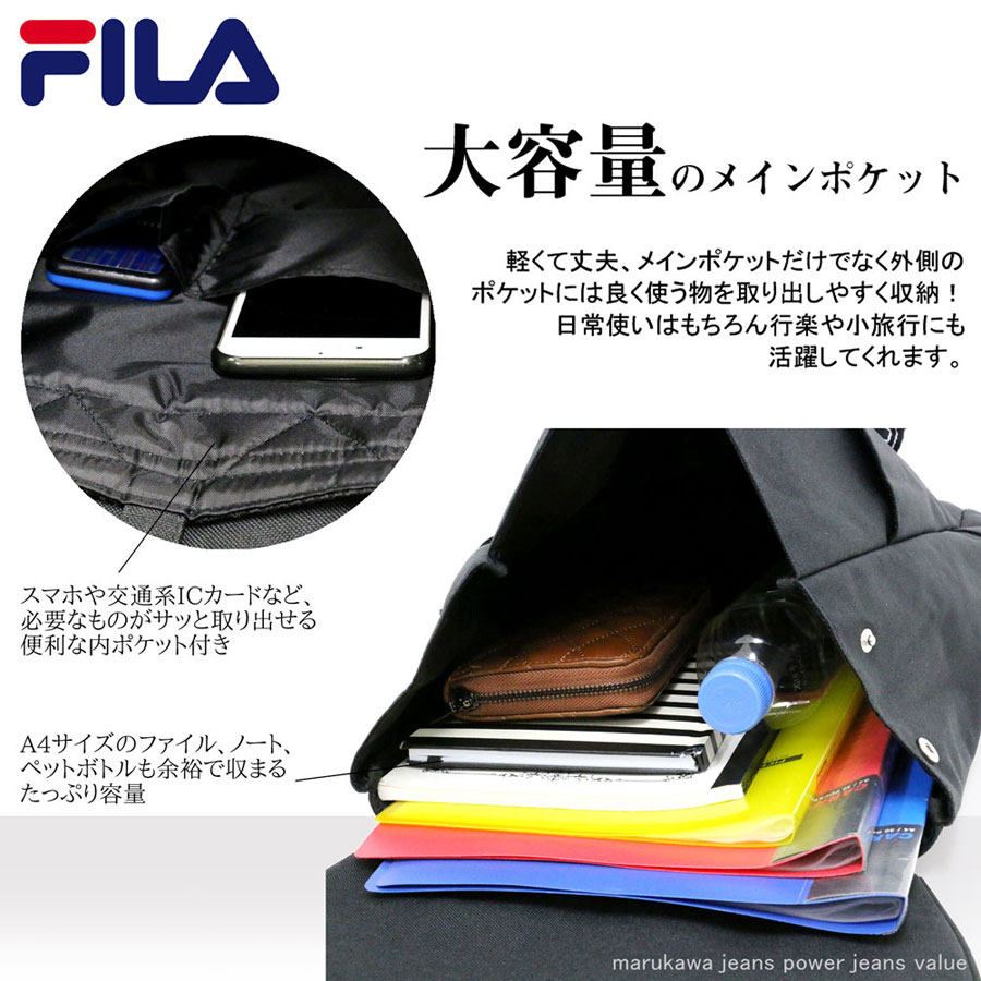 洗濯表示 特徴・メイン収納(インナーポケット×2)・フロント ポケット×1 ジップポケット×1 FILAロゴエンブレム・サイド 左右ポケット×1 FILAロゴエンブレム サイドジップから取り出し可能 【FILA】リュック メンズ レディース バッグ【FILA】リュック メンズ レディース バッグ 【カテゴリー 一覧】【ブランド 特集】【半袖】【大きいサイズ】【Tシャツ】【商品一覧】