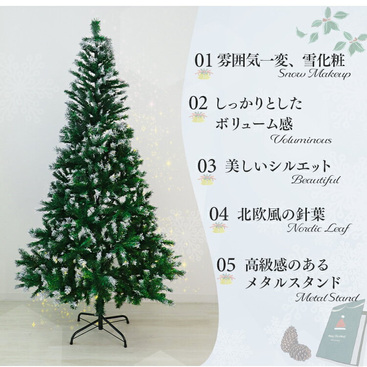枝先に雪が積もったような美しいクリスマスツリー! ロマンティックなクリスマスを演出するのにピッタリです。