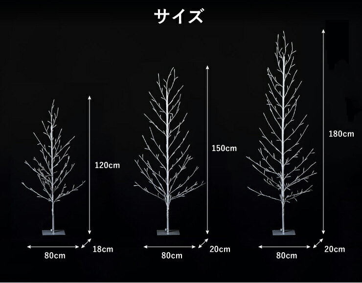 ブランチツリー150cm梱包サイズ210x85x1500mmサイズ約幅80×奥行き20×高さ150cm材質スチール銅/ポリ塩化ビニルLED色ウォームホワイトLED数150球電圧約30V消費電力約3Wセット内容ツリー1式/ベース/点灯スイッチ付きコード/専用アダプター/ペグ4本入数1セット備考連結不可/組み立て式/防雨仕様:IPX3(JIS防雨形)/8パターン点灯/コード長:約3m原産国中国【送料について】北海道、沖縄、離島は別途送料を頂きます。