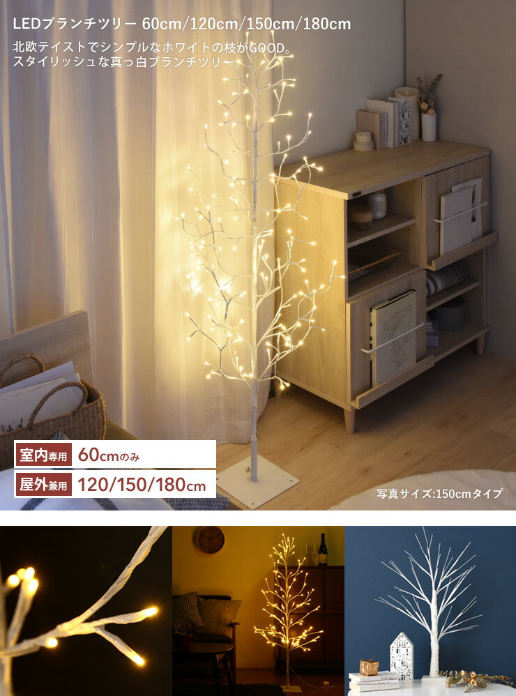 型番:FJ16653 商品名:LEDブランチツリー 150cm 本体サイズ:高さ約150cm あたたかみのあるやさしい灯りでクリスマスにもぴったりなシンプルブランチツリー。
